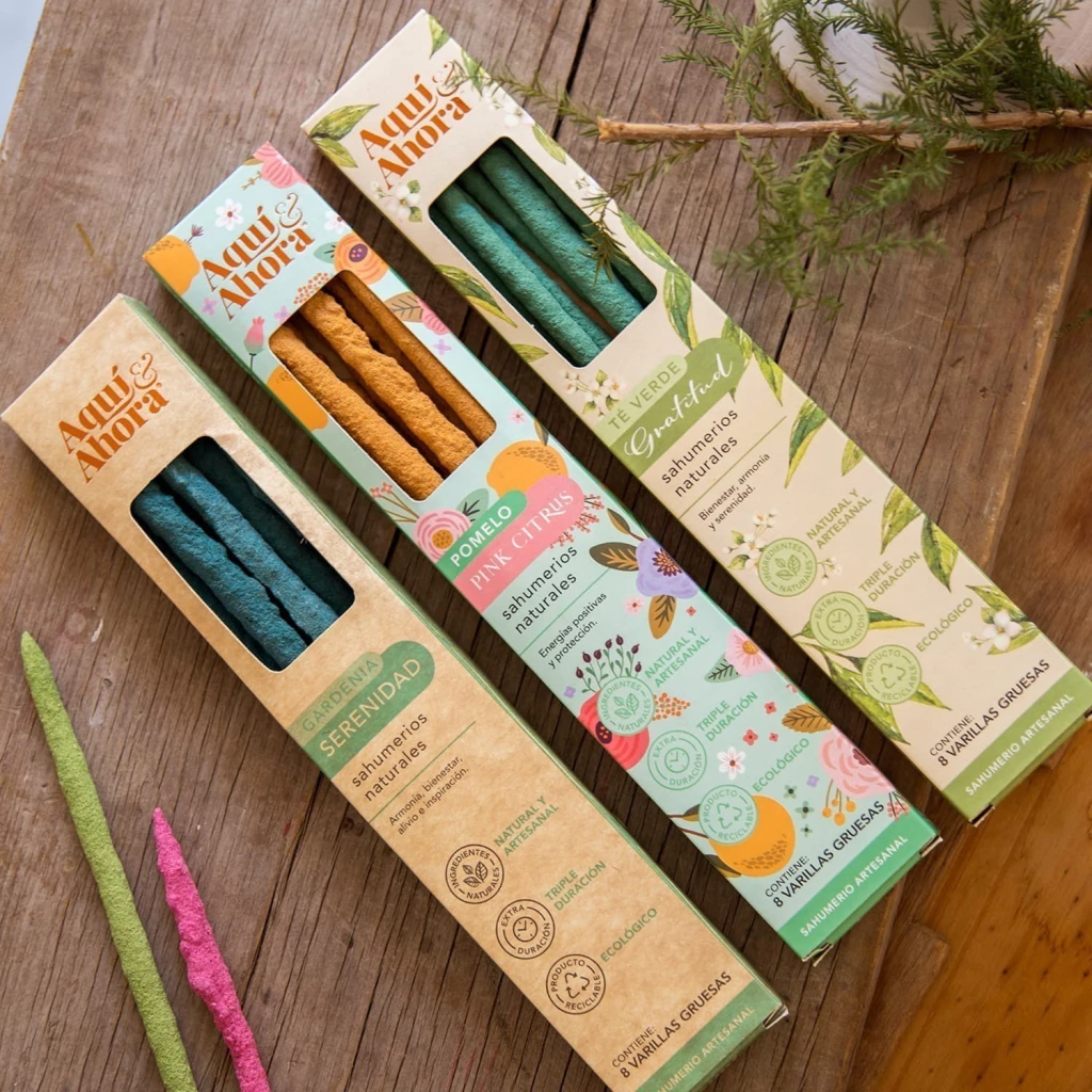 Son naturales de extra duración, 100% artesanales con varilla de bambú en el centro. Caja de presentación impresa con ventana.
